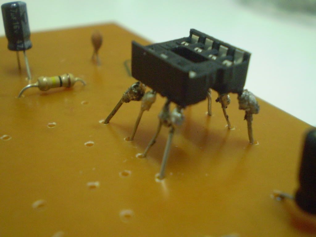 si ya se quedo re como el orto pero no se tocan las patitas jejej asi que no hay drama este zocalo es para poner sobre el sin soldar el circuito integrado que es el LM308 entonces el dia que se nos llegue a quemar unicamente lo reemplazamos sin tener que soldar y desoldar.